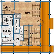 - A 2-story log house also for winter usage, room for 16 persons ( all beds are separate and movable )